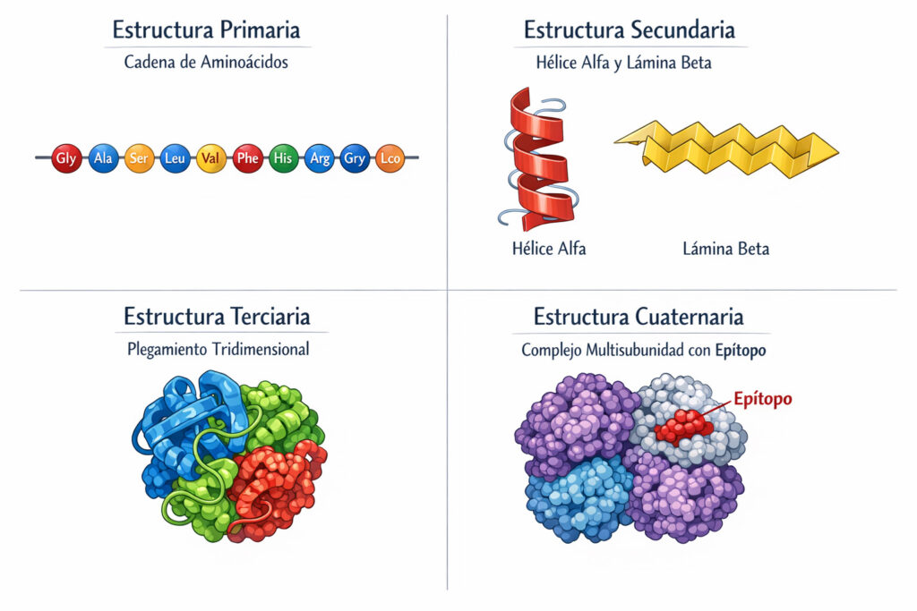Dentro de esta estructura tan complicada hay partes que el sistema inmune puede reconocer y que se llaman epítopos.
